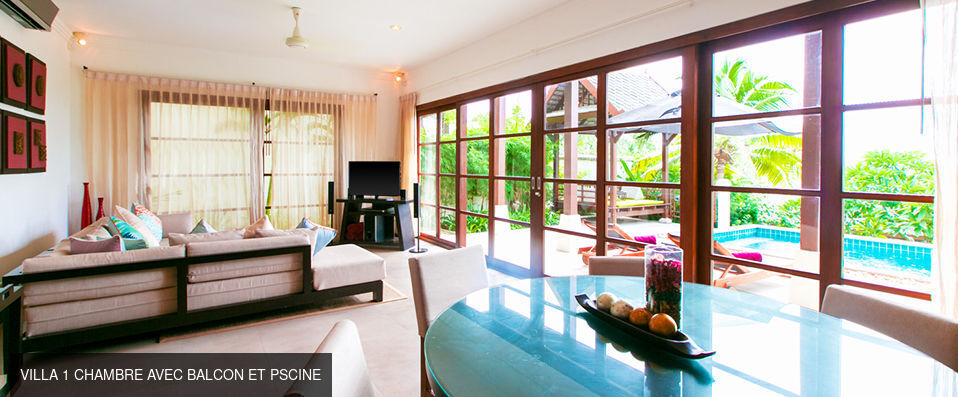 Vous séjournerez en Villa 1 chambre avec balcon et piscine pouvant accueillir jusqu'à 3 adultes ou 2 adultes et 1 enfant