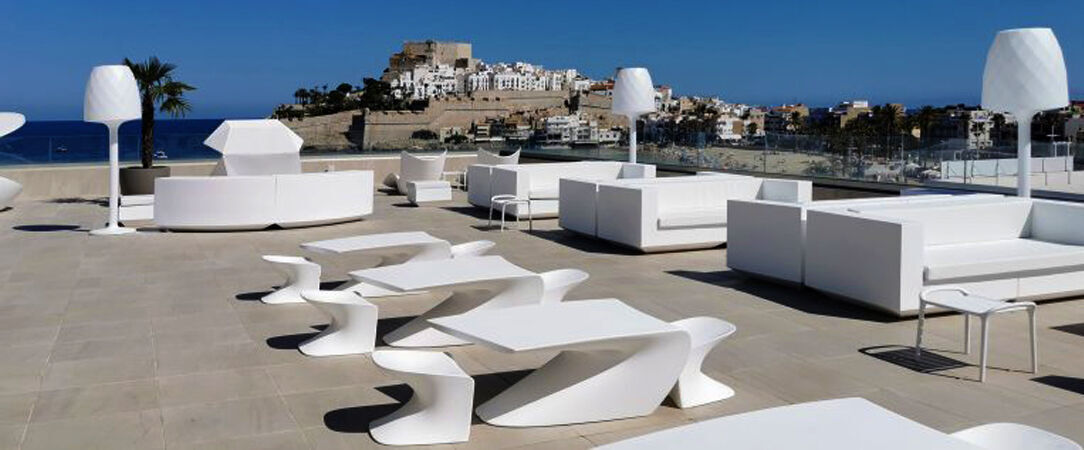 Des heures de farniente vous attendent au bord de l’eau… à moins que vous ne les passiez sur le rooftop ! Tout aussi élégant que les autres lieux de l’hôtel, la vue imprenable sur la Méditerranée et le Château de Peñíscola ajoute encore un charme indescriptible à l’Hotel & Spa Castillo de Peñíscola **** Sup. Découvrez-le sans plus tarder.