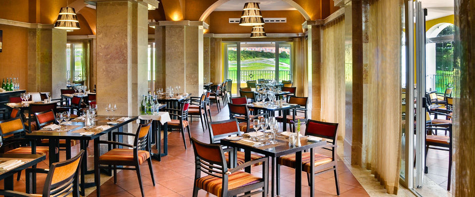 Là, les murs jaunes et toits rouges de l’hôtel se marient en parfaite harmonie au vert de la campagne environnante, le bleu de la piscine venant sublimer ce panorama aux couleurs vives et chaudes, si symboliques du Portugal. Alors que certains observent les golfeurs pratiquer leur swing, d’autres préfèrent se prélasser en toute simplicité au bord de l’eau turquoise de la piscine… Ou dans les bulles du bain à remous ! Il y en a pour tous les goûts dans ce luxueux établissement : les sportifs y aimeront les courts de tennis, la salle de fitness et le centre équestre ; les épicuriens y apprécieront le Spa dernier cri et son incroyables vues sur les vignobles alentours. Comment ne pas flâner quelques instants devant ce panorama d’exception ? Une vue qui s’apprécie d’autant plus confortablement installé sur la terrasse du Sports Club, dégustant des tapas et sirotant une délicieuse Sagres…