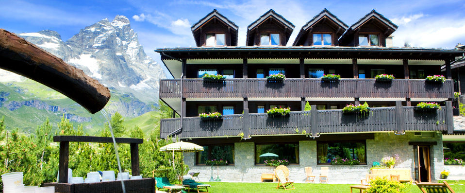 L'Hôtel Hermitage Spa & Beauty ***** est situé à 2 050 mètres d'altitude, au pied du Mont Cervin dans le village de Breuil-Cervinia.