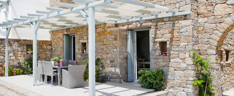 Le Niriides Luxury Homes se trouve sur la côte Sud de l'île de Mykonos, à une dizaines de kilomètres du centre, de l'aéroport et du port. Les îles des Cyclades sont accessibles par avion ou ferry, comme la plupart des îles grecques.